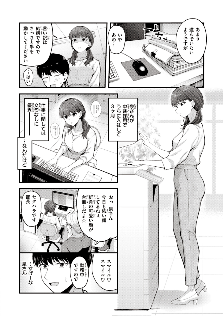 中途採用の泉(いずみ)さんは、とても優秀だけどいつもクールな女性社員。